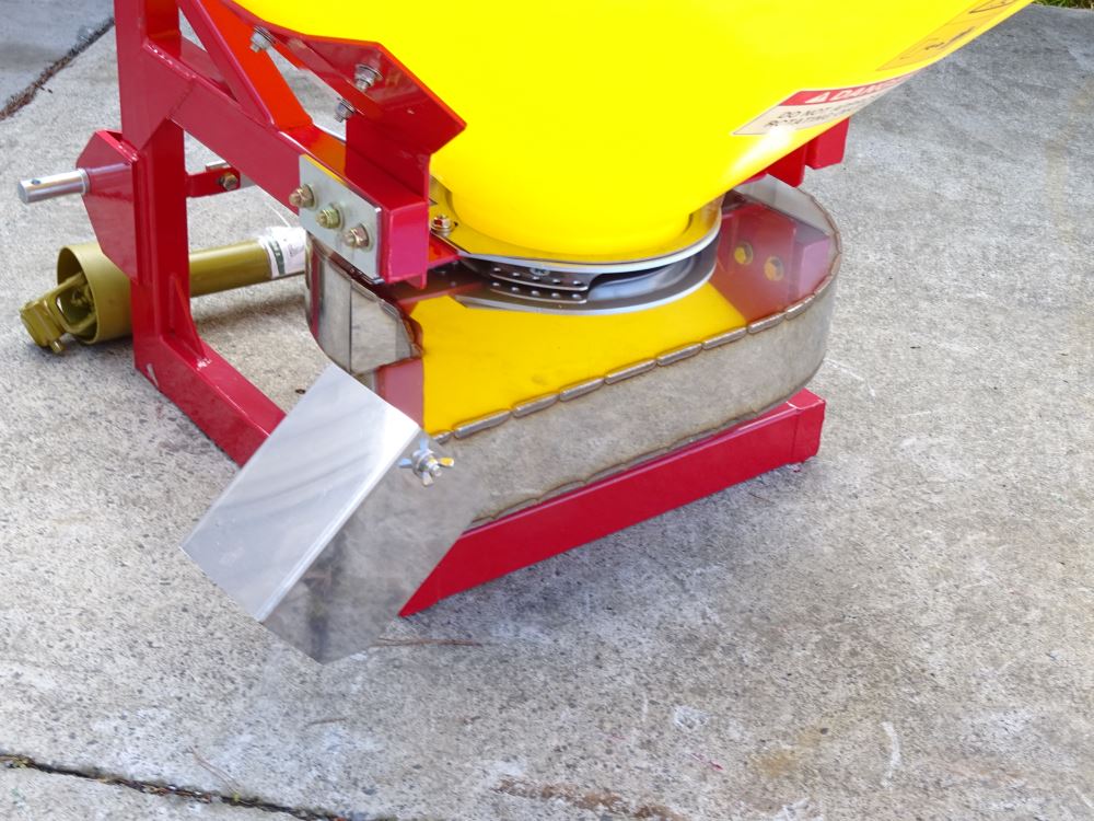 -This implement will make spreading under trees and vines easier, with an adjustable deflector tip. The side dresser can be easily removed so it comes with a standard deflector for spreading Left/Right- 180 degree spreading. Other options; Electric remote control for fertilser shutter control